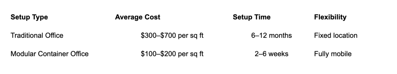 Building a traditional office can take months and cost hundreds of thousands of dollars.